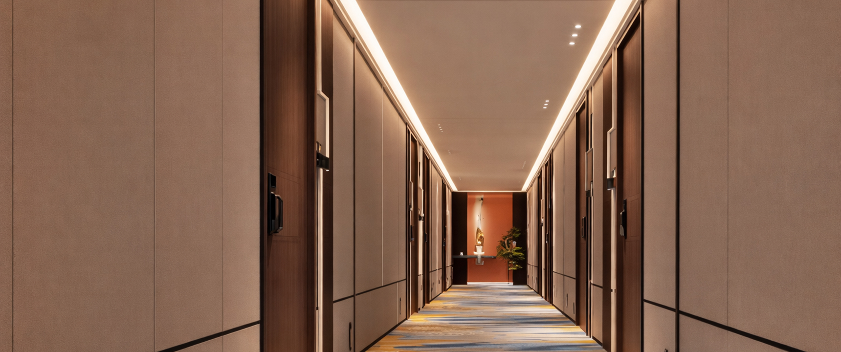 รับผิดชอบวางผังและงานรับเหมา Fit-out พื้นที่ล็อบบี้ ร้านอาหาร All-Day Dining และเลานจ์อเนกประสงค์ มีศักยภาพในการจัดการโครงสร้างรับน้ำหนักเพดานสูง Double Volume และติดตั้งแชนเดอเลียร์ขนาดใหญ่ จัดสัดส่วนจุดเคาน์เตอร์ Reception โซนฝากกระเป๋า และเลานจ์พักคอยอย่างสมดุล ใช้ความพรีเมียมของดีไซน์เพื่ออัปเกรดราคาห้องพักเฉลี่ยต่อคืน ADR ของโรงแรมโดยตรง